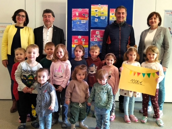Bild (v. l.): Sophia Brücker, Bürgermeister Alfons Neumeier, Thomas Mayr, Gabriele Ertl, Leiterin der Kindertagesstätte. Große …